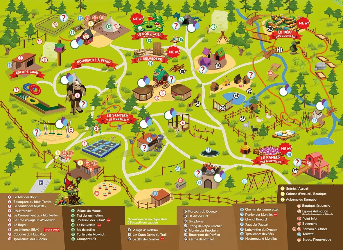 Accessible aux enfants ainsi qu’au adultes, Elfy Park vous propose une multitude de jeux mêlant ludique et pédagogique : luge d’été, cabanes perchées, mer de filets, tyroliennes, toboggans, jeux sonores, espace contes…